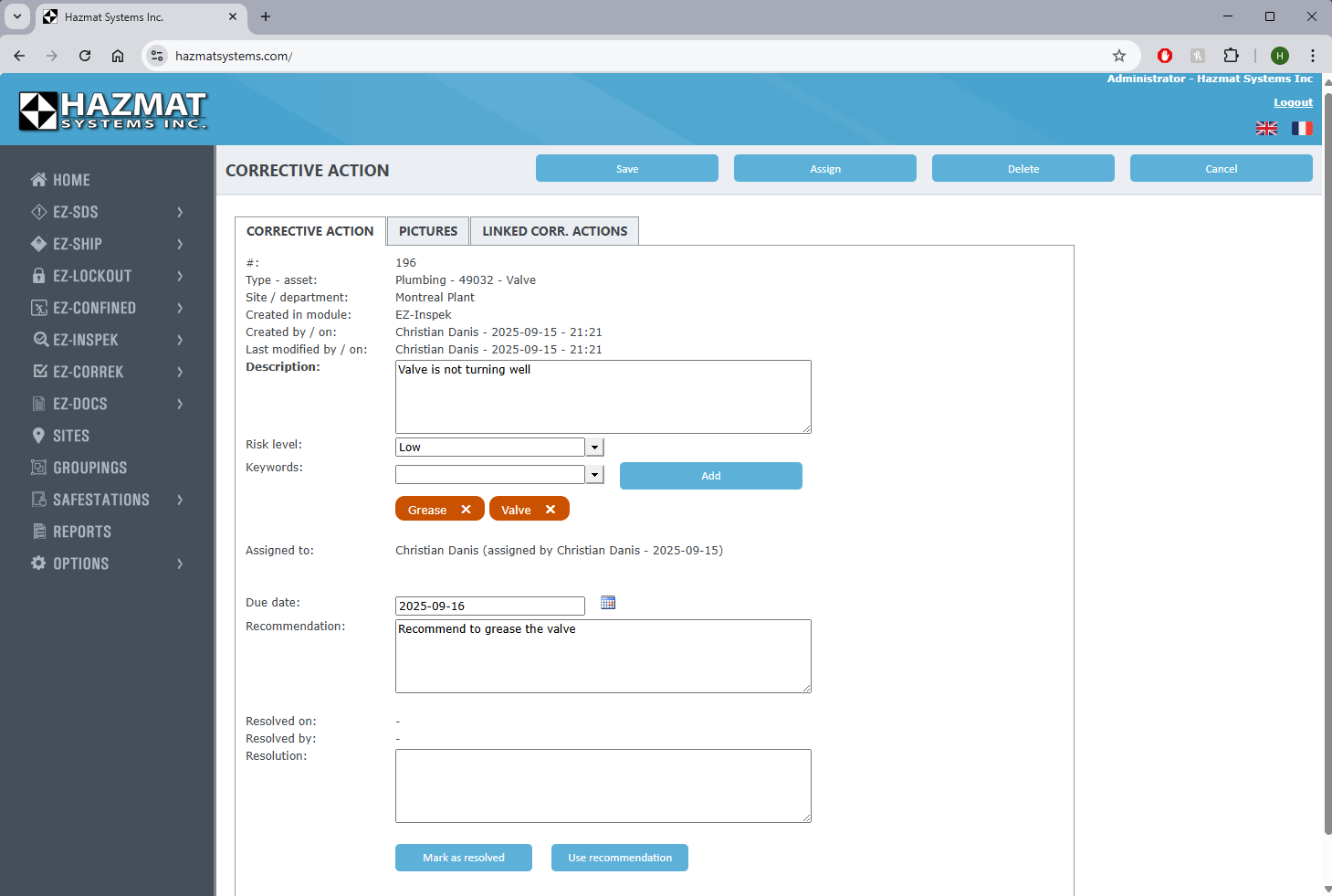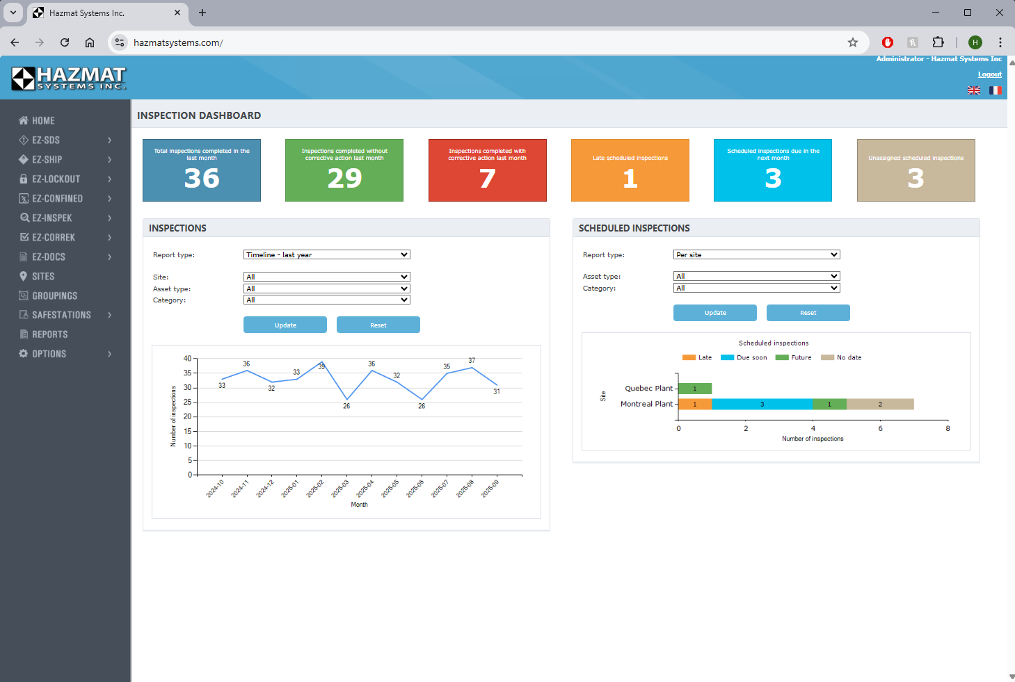 Plan. Perform. Prove. EZ-Inspek is a modern inspection platform that transforms the way you manage safety and compliance. Plan recurring inspections with smart scheduling, perform them effortlessly in the field and instantly prove compliance with time-stamped reports, dashboards, and corrective action tracking. Accessible on desktop and mobile, it keeps your facilities audit-ready and your teams focused on productivity instead of paperwork.